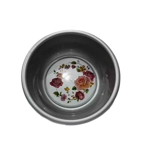 Detail Baskom Plastik Bulat Abu Silver Motif Bunga / Baskom Tempat Buah Beras Kondangan