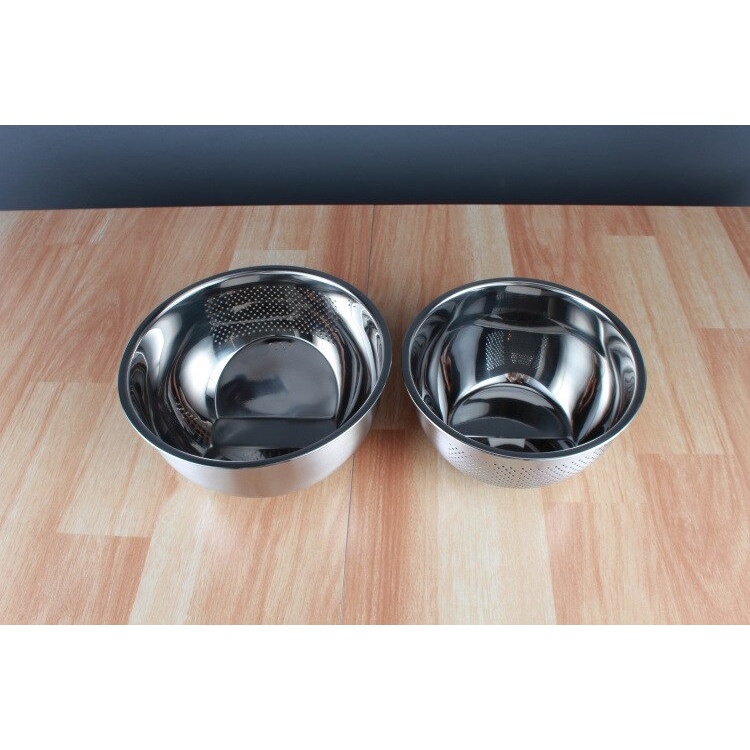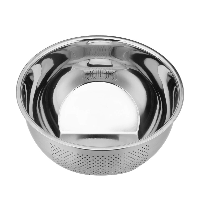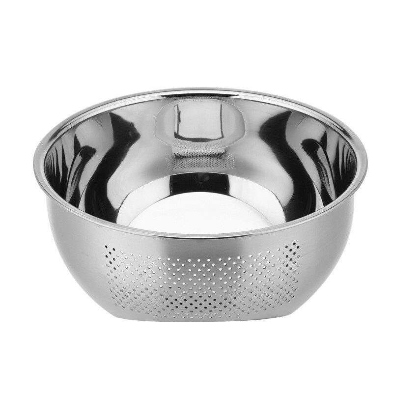 Baskom ini berfungsi untuk mencuci buah, sayuran dan beras dengan sistem penyaring. Terdapat lubang-lubang kecil sebagai ventilasi air, sehingga air mengalir ke lubang pori-pori baskom yang tersedia. Alat ini terbuat dari material stainless steel berkualitas sehingga awet dan tahan lama.