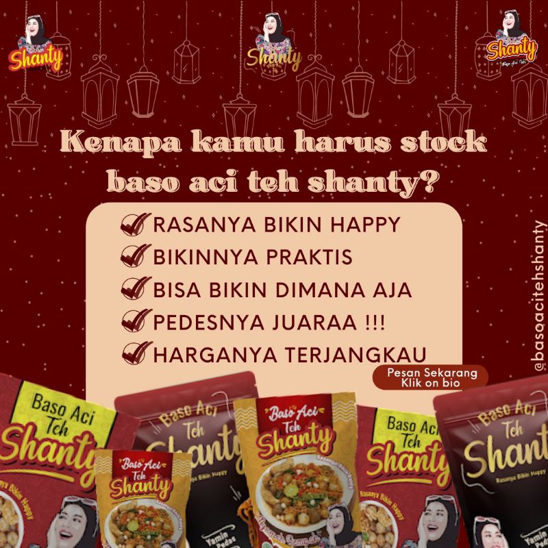 Baso Aci Teh Shanty merupakan baso aci milik Teh Shanty/ Istri dari Komedian Deny cagur. Dengan darah sunda yg kental, teh shanty merilis baso aci khas garut yang menggugah selera banget Varian :