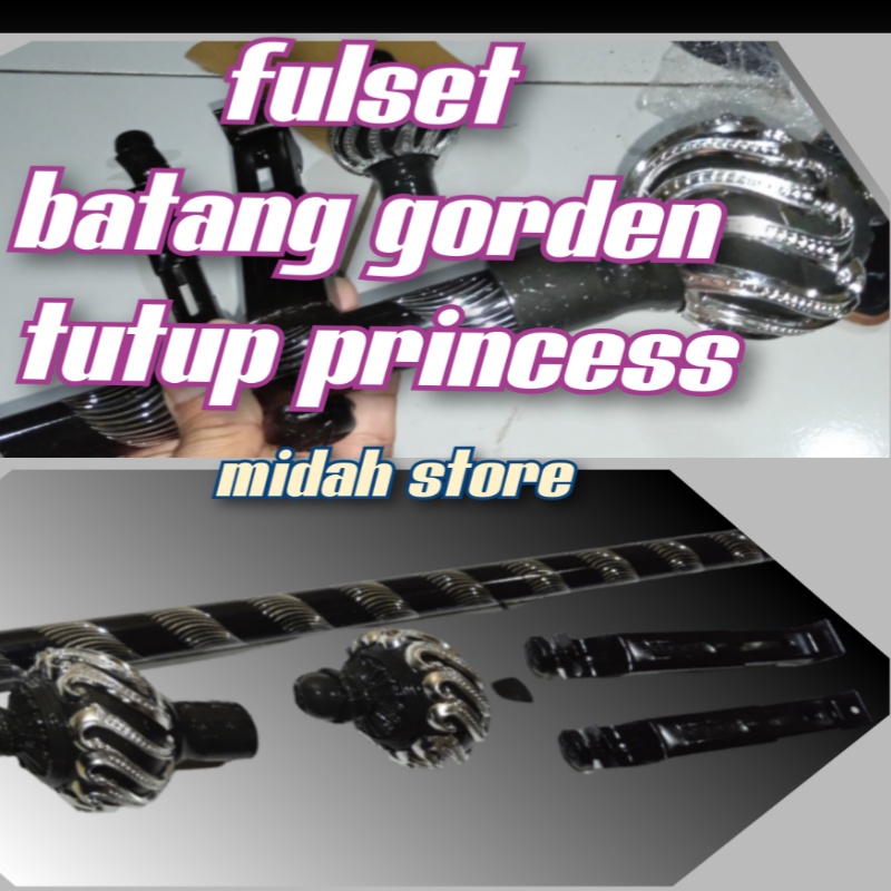1 tiang /batang 2 tutup princess 2 breket /penyangga dengan tampilan yg sangat mewah dan megah membuat dekorasi gorden rumah anda semakin cantik dan mewah dengan harga yg relatif sangan murah anda sudah mendapatkan satu set batang gorden princess
