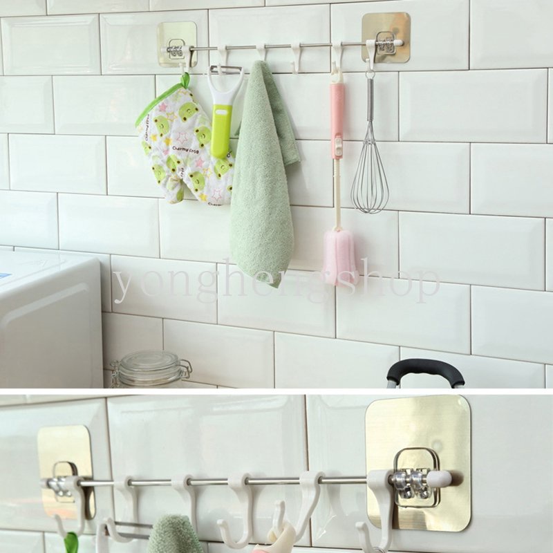 Perlengkapan Rumah > Organizer Rumah > Pengait > Batang Stainless Steel Dengan 6kait Perekat Diri Rak Penyimpanan Lemari Dapur Gantungan Penyimpanan Kait Multifungsi Rak Handuk Kamar Mandi Organizer Rumah