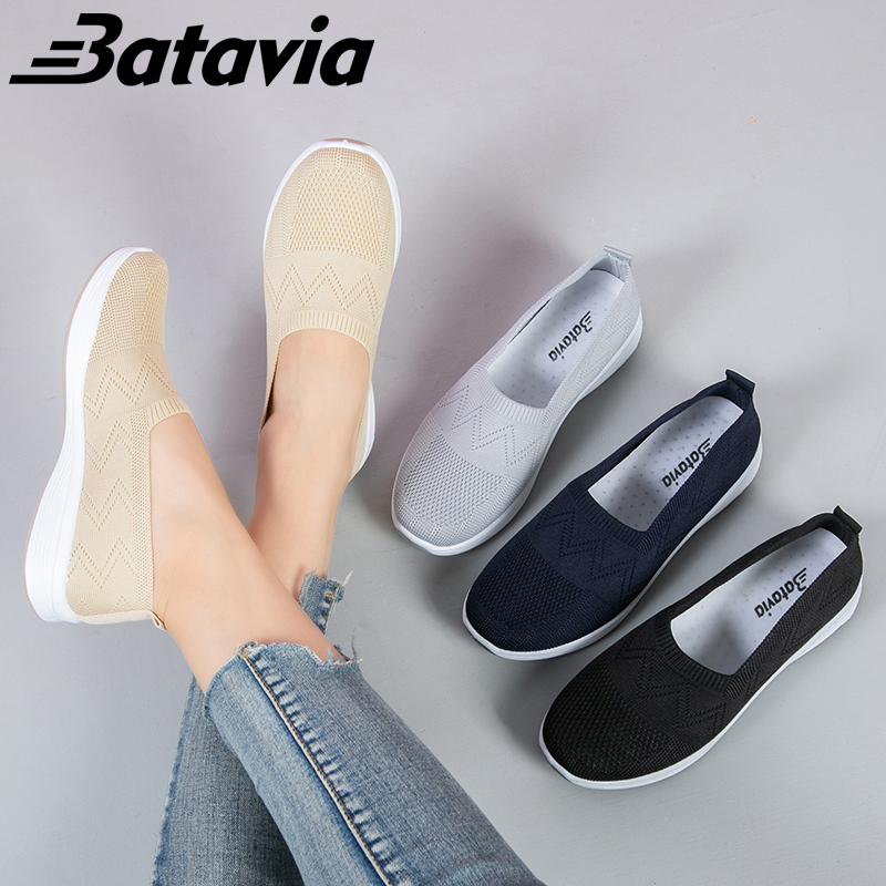 Detail Batavia 2023 sepatu wanita datar baru rajutan sepatu sepatu kasual sepatu dan sepatu puting cod mengenakan sol sepatu A164
