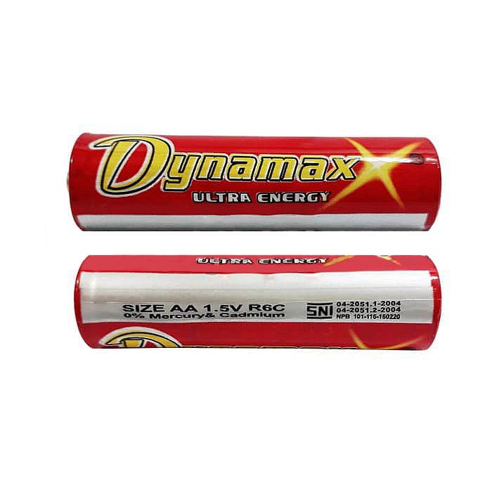 Baterai Dynamax size AA / A2 Cocok untuk segala barang elektronik yang membutuhkan baterai AA. Terdaftar dan sesuai SNI.