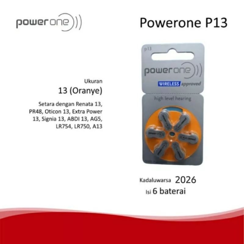 Baterai khusus untuk alat bantu pendengaran. Setara dengan Renata 13 PR48, Oticon 13, A13, Extra Power 13, Signia 13, ABDI 13, AG5, LR754, LR750 Isi 1 pack/roll = 6 baterai.