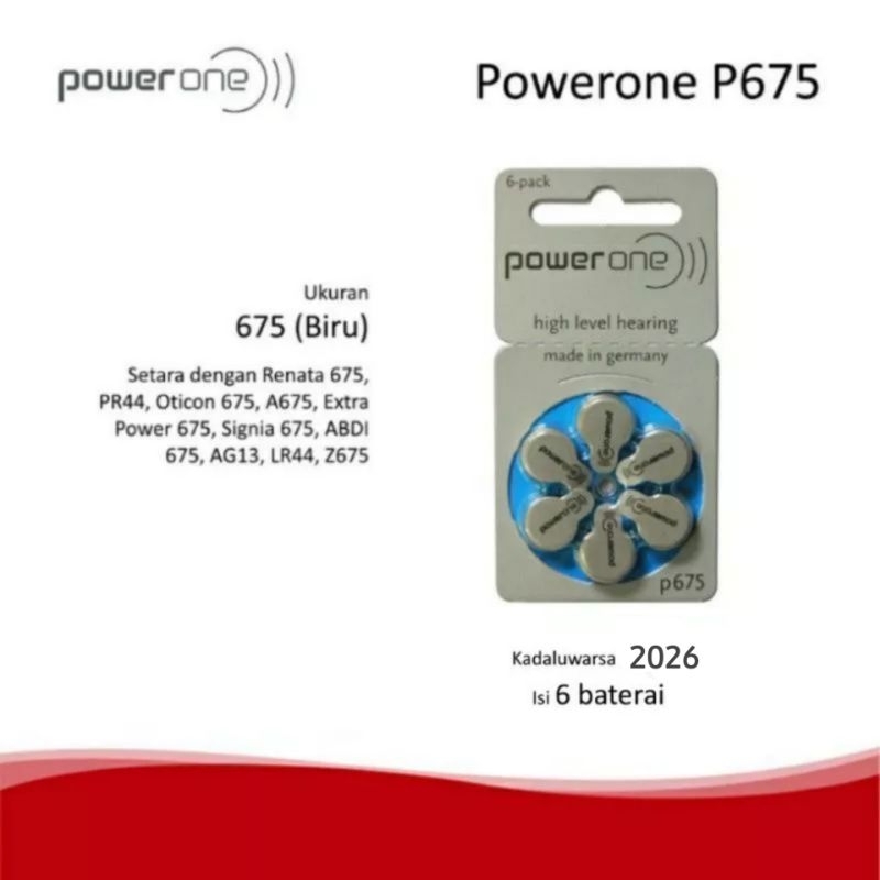 Powerone Mercury-Free Hearing Aid Battery adalah baterai yang diperuntukkan khusus untuk alat bantu dengar, seperti Audioservice, Bernafon, Beltone, Hansaton, Oticon, Phonak, Resound, Rexton, Siemens, Signia, Starkey, Unitron, Widex dan merk alat bantu dengar lainnya.