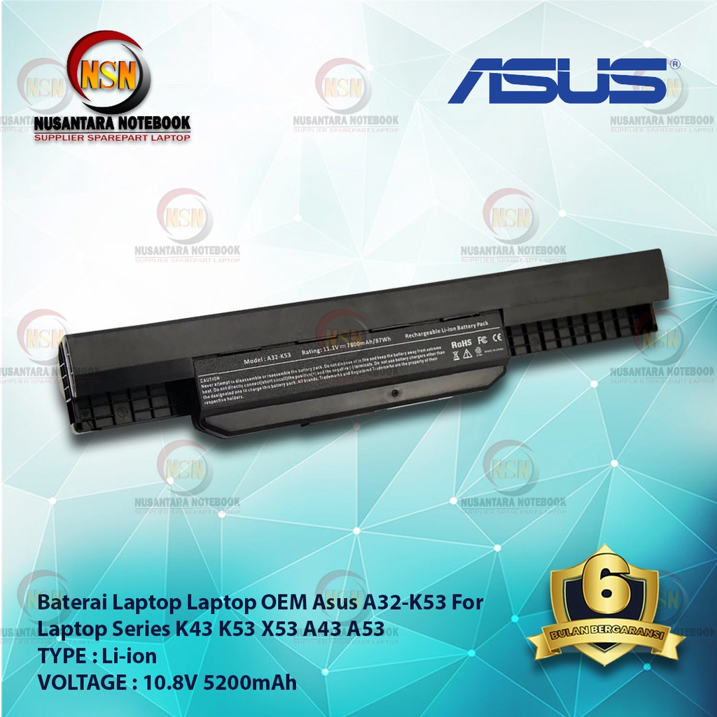 Baterai Asus A32-K53 OEM For Laptop K43 K53 X43 X53 A43S A53Baterai Asus A32-K53 OEM For Laptop K43 K53 X43 X53 A43S A53Baterai Asus A32-K53 OEM For Laptop K43 K53 X43 X53 A43S A53