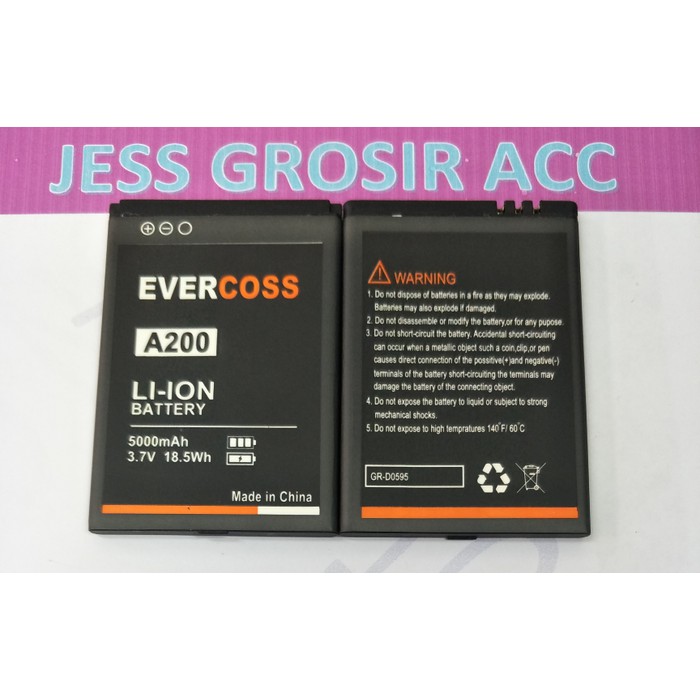Description Product : * GB/T 18287-2000 * Kode Battery : A5 , A200 ( Perhatikan Kode Yang Tertulis Di Baterai Anda) * Capacity :5000mAh / 18,5Wh * Rated Voltage : 3,7V * Merek : EVERCROSS EVERCOSS CROSS * Charger Voltage : 4,2V * Compatible : EVERCROSS EVERCOSS CROSS ( A5 , A200 ) Others.......