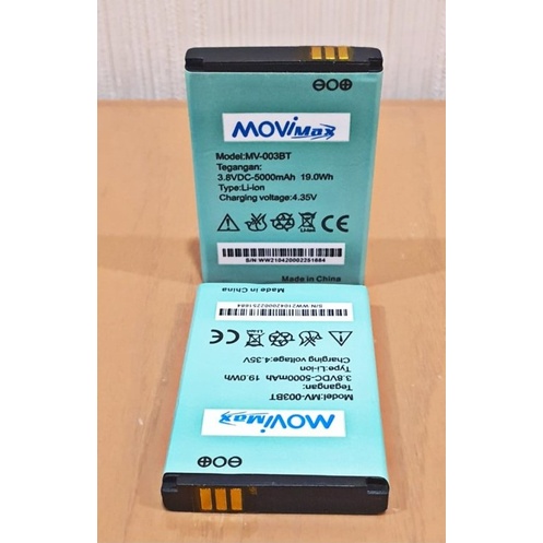 Description Product : * Model : MV-003BT / H15348 / H 11348 ( Perhatikan Kode Yang tertera Di Baterai Anda) * Capacity :5000mAh / 19.0Wh * Rated Voltage : 3,8VDC * Merek : MOVIMAX * Charger Voltage : 4,35V * Compatible : Modem MiFi XL GO MV003 , Modem Mifi 4G ANDROMAX Smartfren M2Y , Telkomsel ZTE WD670 , BOLT JUNO MV005