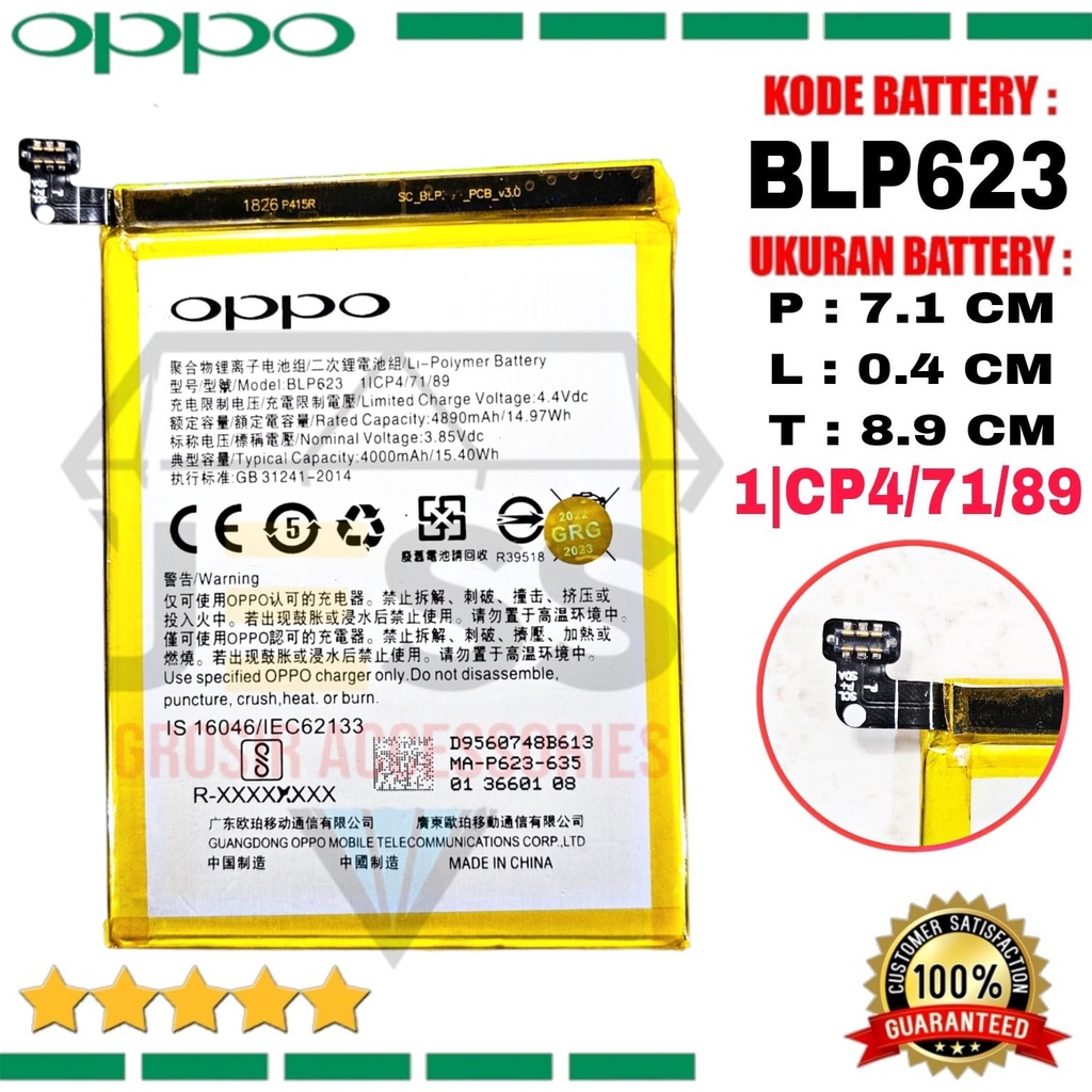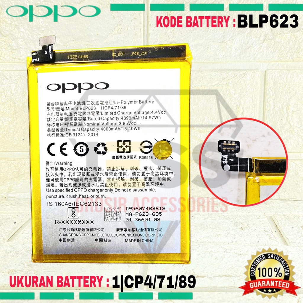 DESKRIPSI PRODUCT : 1/CP4/71/89 Merek :OPPO Kode : BLP623 ( Perhatikan Kode Yang Tertulis di Baterai Anda) Kualitas : HIGH QUALITY Rated Voltage : 3.85V Rated Capacity : 4000mAh / 15.40Wh Typical Capacity : 4890mah / 14.97Wh Charger Voltage : 4.4Vdc Compatible : HP OPPO ( F3 PLUS , F3+ , CPH1613 & R9S PLUS , R9S+ , CPH1611 ) OTHERS.....