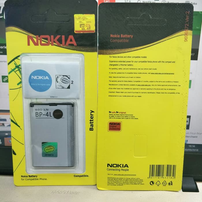 Merek : NOKIA Model : BP-4L / BP 4L / BP4L ( Perhatikan Kode Yang Tertera Di baterai Anda)