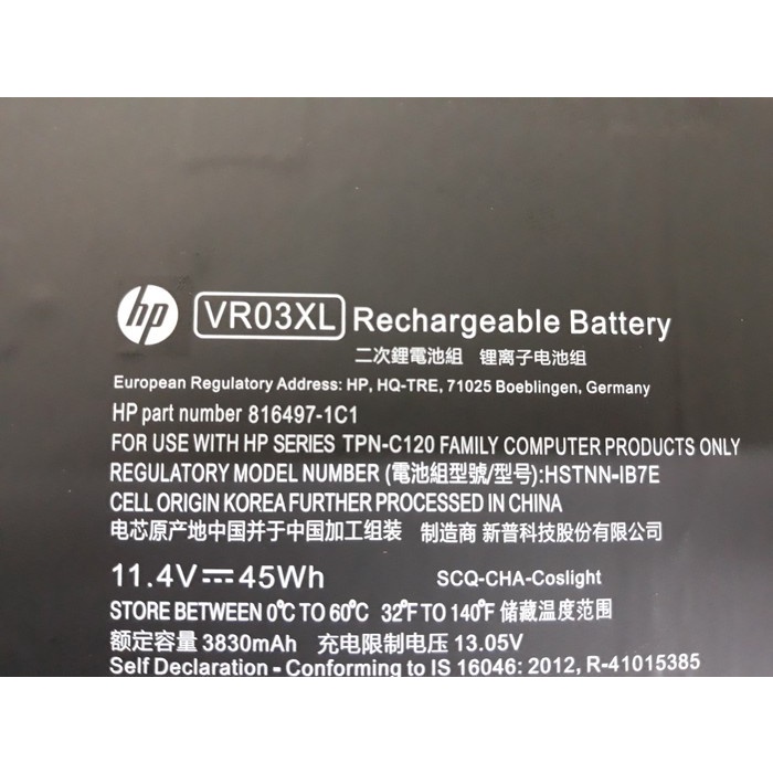 Battery HP VR03XL Voltage : 11.4V Capacity : 45Wh Partnumber : 816497-1C1