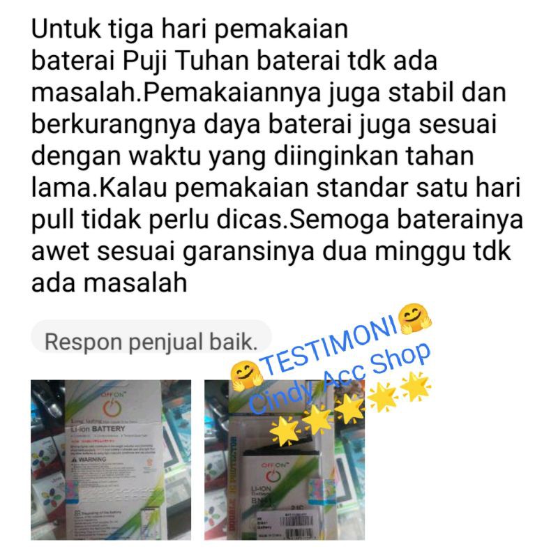 Baterai Sudah kami CEK dulu sebelum dikirim yach.