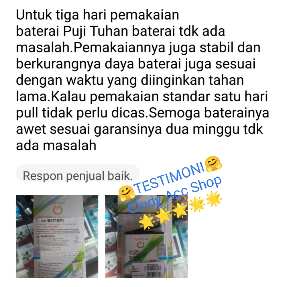 Baterai sebelum dikirim kami TES dan CEK tegangan nya dengan MULTITESTER, minimal 3,8 volt dan di TES CHARGING dengan desktop charger supaya saat sampai baterai DAPAT MENYALAKAN HANDPHONE dan BISA DI CHARGE.