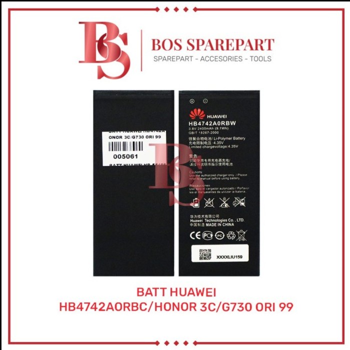 Handphone & Aksesoris > Handphone & Aksesoris Lainnya > BATERAI HUAWEI HB4742AORBC / HONOR 3C / G730 ORI 99 / BATTERY / BATRE