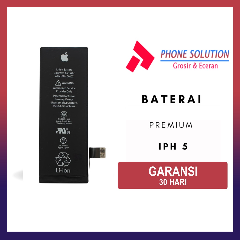 - Tipe Baterai IPH 5s / IP 5s / Baterai IPH 5c / IP 5c Premium - Kualitas Unit adalah OEM - Bulit Quality terjamin - Baterai memiliki dimensi presisi tingkat tinggi - Sudah menggunakan socket yang memiliki standar sehingga tidak menyebabkan Overcharge - Produk dijamin Baru