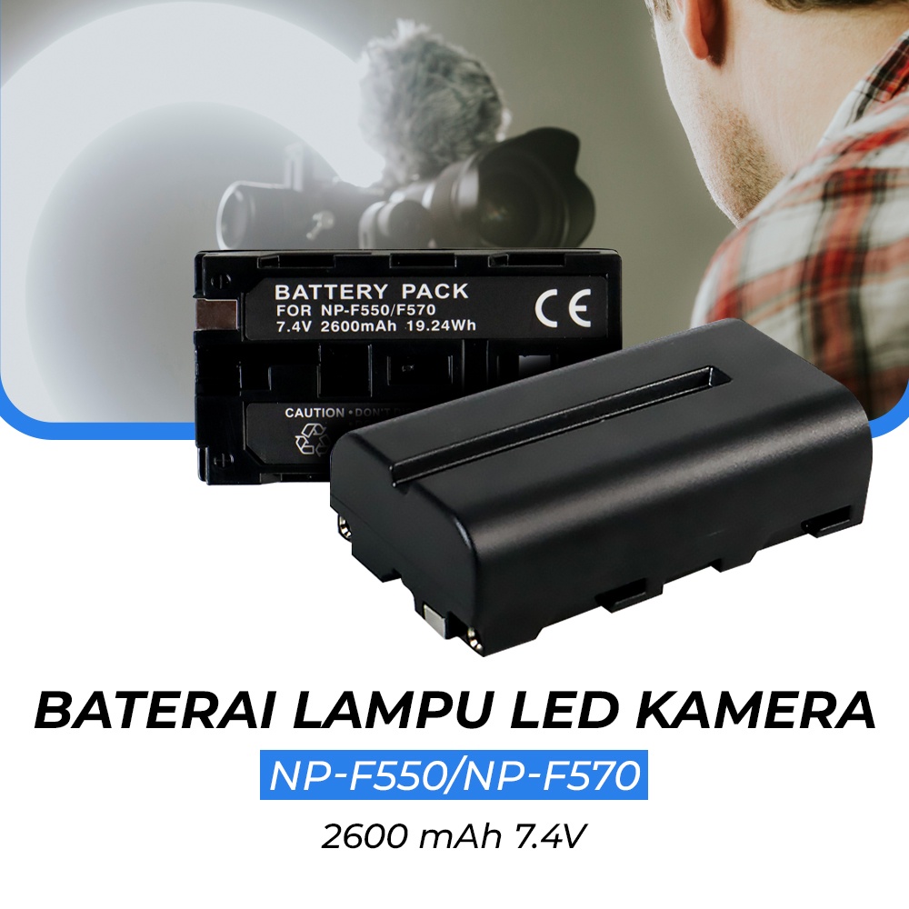 Sempurnakan Lampu Kamera dan Ring Light Jika Anda memiliki gear kamera yang menggunakan baterai tipe F atau NPF, seperti Aputure Amaran, Yongnuo LED, hingga Field Monitor Feelworld, maka baterai ini merupakan pilihan tepat. Tidak hanya lampu kamera, Anda juga dapat memasangkan baterai NP-F550/NP-F570 ini pada ring light dengan tipe slot baterai yang sama.