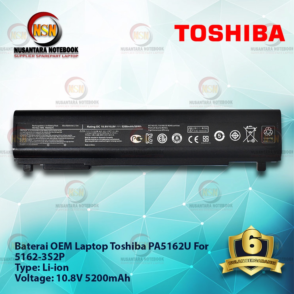 Baterai OEM Laptop Toshiba For PA5162U 10 8V 5200mAhBaterai OEM Laptop Toshiba For PA5162U 10 8V 5200mAhBaterai OEM Laptop Toshiba For PA5162U 10 8V 5200mAh