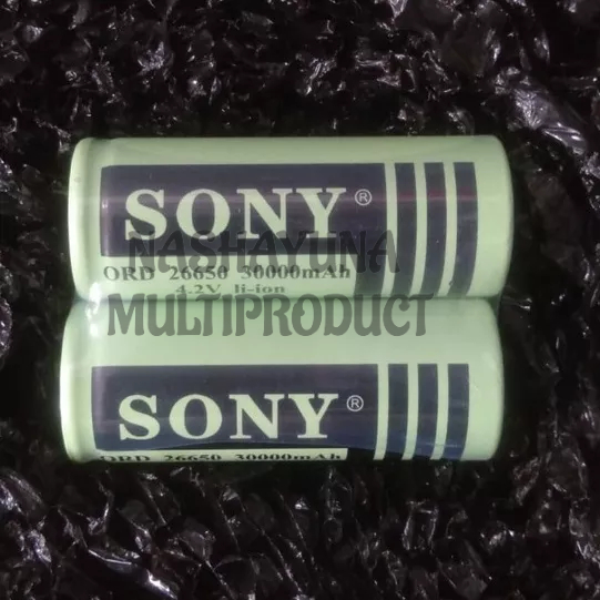 PERHATIAN!! DAPAT 2 PCS, Informasi Produk : Model: SONY Atau SAMSUNG Size: 26650 Model Number: 30000mAh,Voltage: 4.2V Rechargeable: Yes Important Safety: Cara yang aman dan benar dalam menggunakan baterai 26650 supaya tetap awet dan tahan lama : Gunakan charger berkualitas yang dibuat khusus untuk baterai Li-ion Jangan menghubungkan pole positive ke terminal negatif, begitu juga dengan sebaliknya Baterai yang tidak digunakan sebaiknya dimasukkan ke dalam plastik pelindung untuk menjaga ketahanan baterai. Package Contents: Barang-barang yang Anda dapatkan di dalam kotak box : 2 x Baterai SONY Li-ion 30000mAh 4.2V Atau 2 x Baterai SAMSUNG Li-ion 30000mah 4.2V