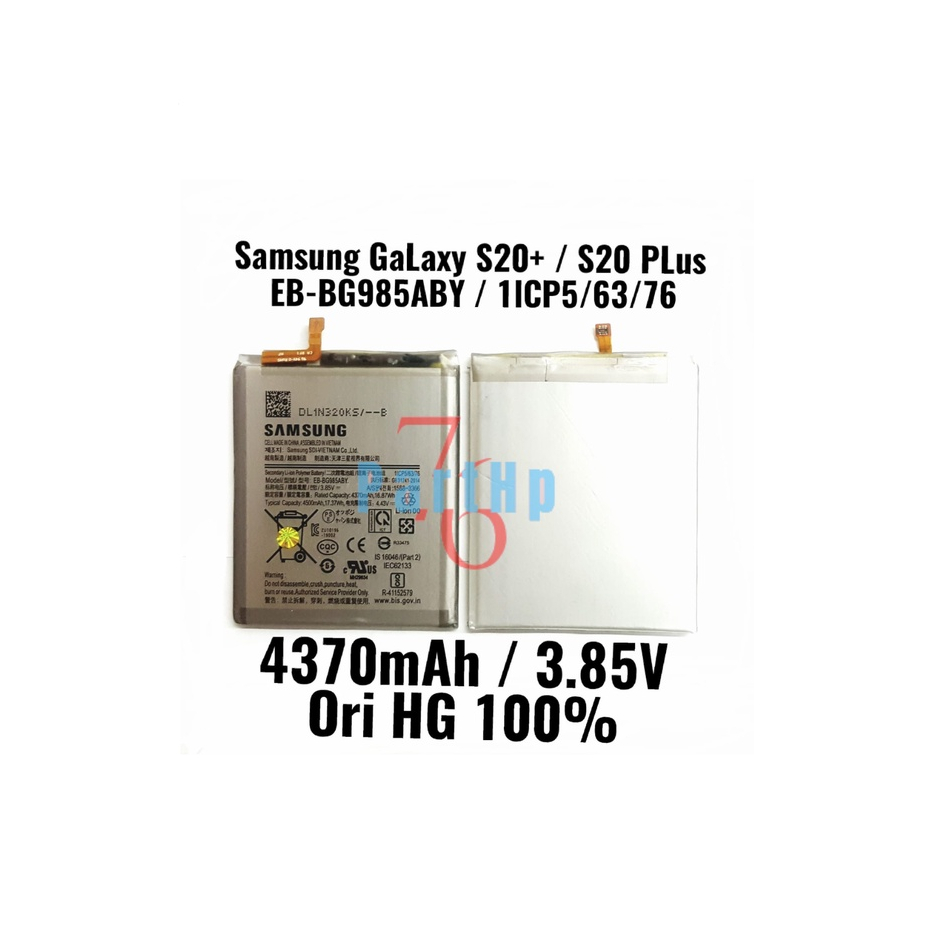 Spesifikasi baterai : - Merk : HG. - Kualitas : Ori Samsung. - Untuk Hp : Samsung Galaxy S20+. - Kapasitas label : 4370mAh. - Tegangan : 3.85V . - Garansi : 1 minggu sejak barang diterima (silakan baca persyaratan di bawah).