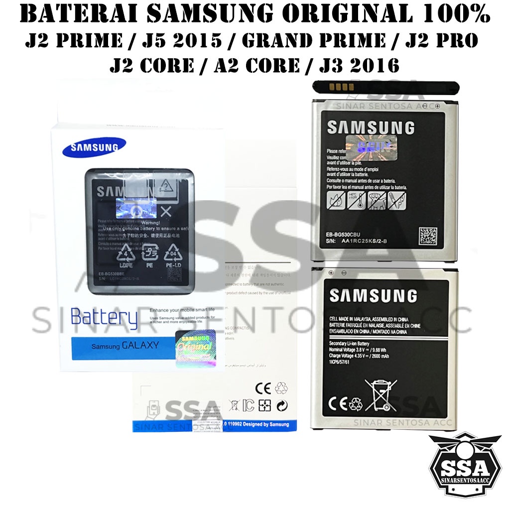 Baterai Original 100% Samsung Galaxy J2 Prime Grand Prime J5 J2 Pro J2 Core J3 2016 A2 Core G530 G531 G532 J250 J260 J300 J310 J320 EB-BG530CBU G530CBU Batre Batrai Batu Battery Handphone HP ORI