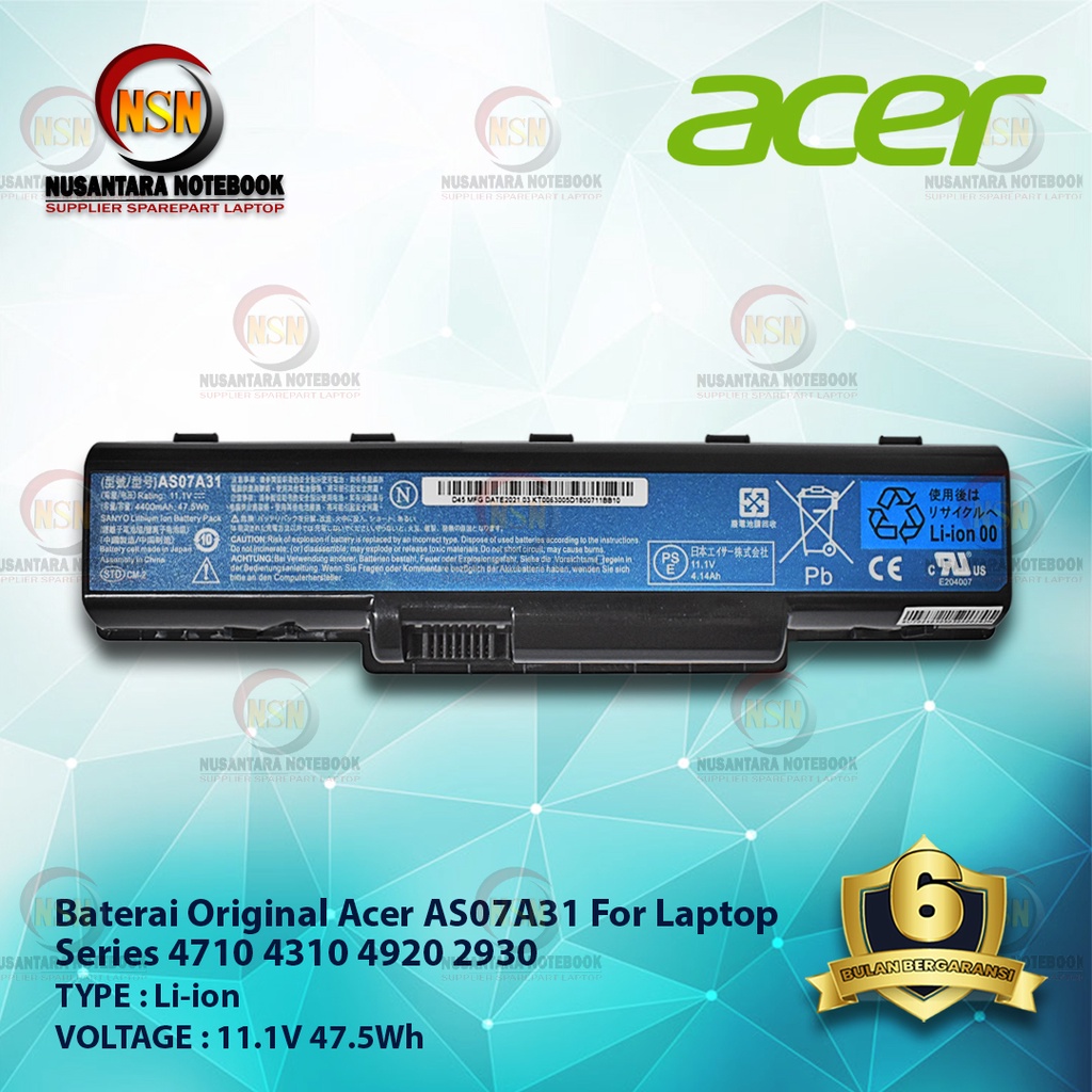 Baterai Original Acer AS07A31 For Laptop Series 4710 4310 4920 2930Baterai Original Acer AS07A31 For Laptop Series 4710 4310 4920 2930Baterai Original Acer AS07A31 For Laptop Series 4710 4310 4920 2930
