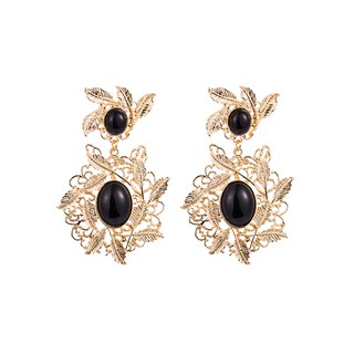 LRC Anting Tusukl Fashion Golden Multilayer Alloy Leaf Hollow Resin Earrings D86714