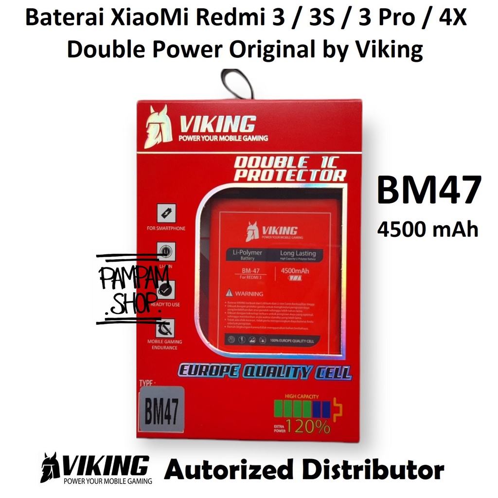 Handphone & Aksesoris > Powerbank & Baterai > Baterai > Baterai VIKING Double Power Original XiaoMi BM47 Redmi 3 3S Pro 4X Batre Batrai HP Xiao Mi BM 47 Ori