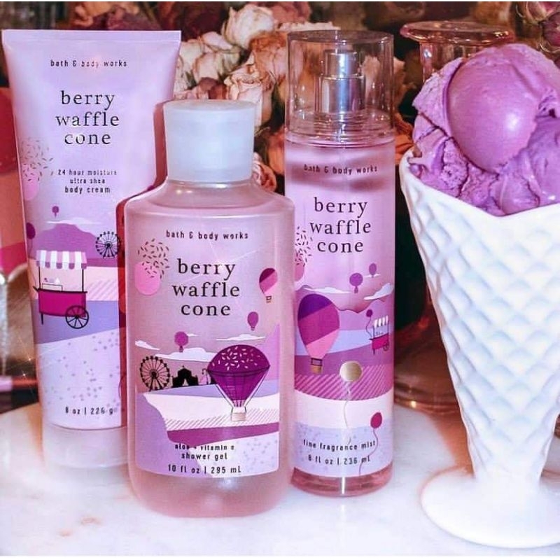 Detail BATH AND BODY WORKS BBW BERRY WAFFLE CONE SERIES MIST LOTION SHOWER GEL BODY CREAM HAND CREAM SHOWER GEL BODY CREAM LOTION MIST WASH WALLFLOWER ROOMSPRAY SCENTPORTABLE GENTLE GEL DEEP CLEANSING GENTLE FOAMING CREAMY LUXE
