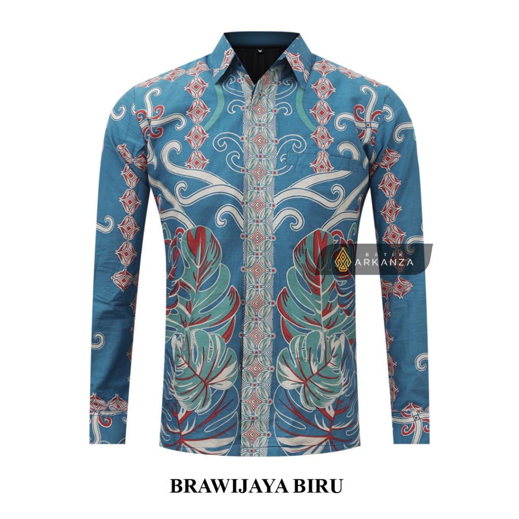 BATIK ARKANZA Motif BRAWIJAYA BIRU Hem Atasan Kemeja Baju Batik Pria Cowok Laki Laki Slimfit Full Lapis Furing Lengan Panjang Lengan Pendek Original Asli