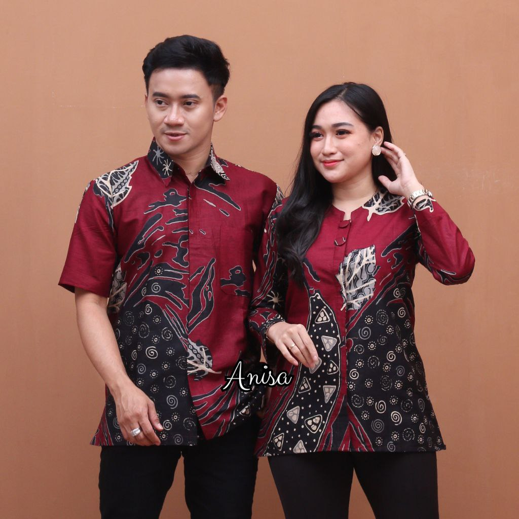 Detail Batik Couple Modern Atasan Blouse Batik Kerja Kantor Wanita Seragam Batik M L XL XXL