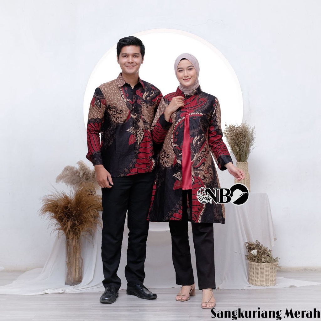 Pakaian Wanita > Batik > Set Pakaian Couple Batik > Batik Couple Modern Atasan Tunik Batik Kerja Kantor Wanita Tunik Batik Couple Seragam Batik Wanita Dan Pria