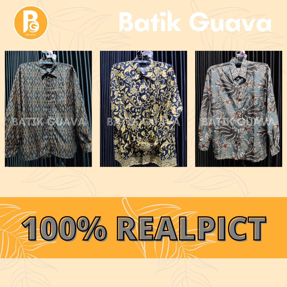 Detail BATIK GUAVA - Batik Pria Lengan Panjang M L XL XXL - Seragam Batik Motif Terbaru