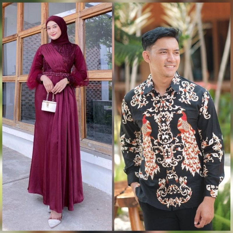 BATIK OFFICIAL - Couple Gamis Nadira Brukat Tulle Mutiara Couple Dress Kondangan Lamaran Baju Couple Lebaran Adeeva AmIra Maxi Dress Modern