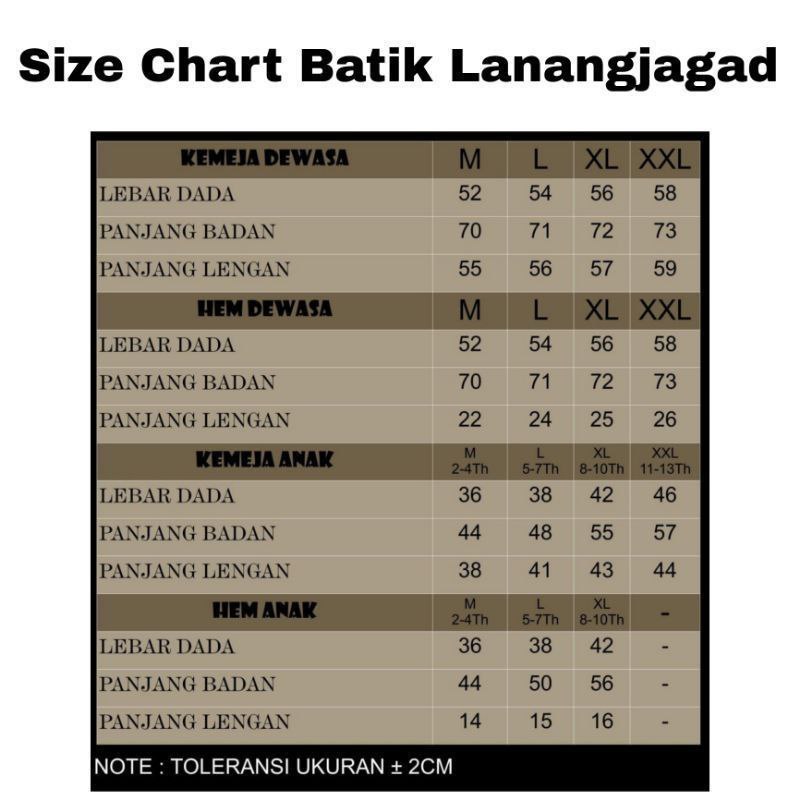 M : Lebar dada 52 cm , Panjang baju 70 cm L : Lebar dada 54 cm , Panjang baju 71 cm XL : Lebar dada 56 cm , Panjang baju 72 cm XXL : Lebar dada 58 cm , Panjang baju 73 cm