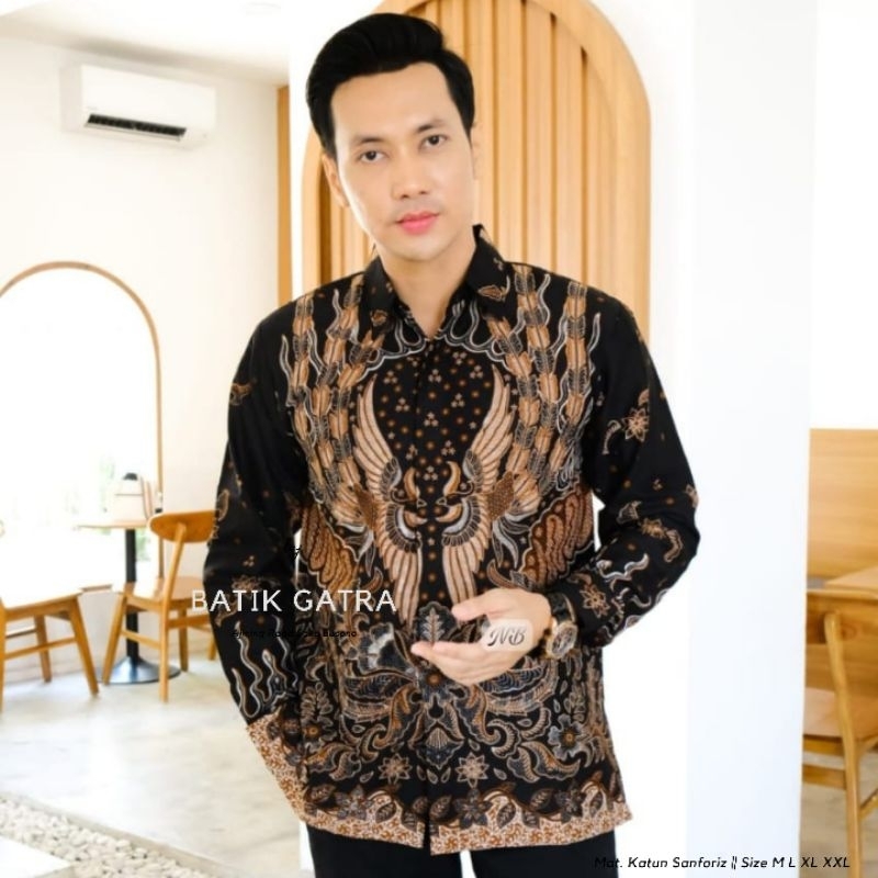 Detail Batik pria lengan panjang jahtera lapis furing