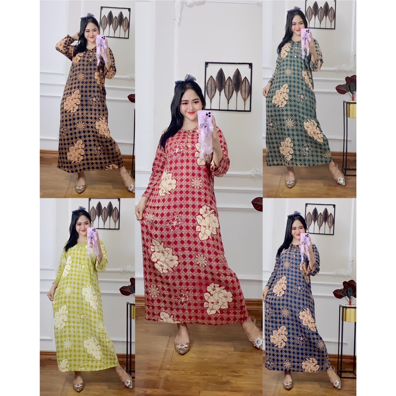 Batik Rinatex - Paket Bundling Longdress Cabutan 100rb Dapat 3pcs - Longdress Batik Sablon Busui Friendly