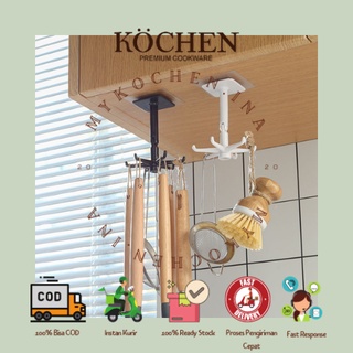 MYKOCHEN.INA Gantungan Spatula 6 Hook Tanpa Bor dan Paku Peralatan Dapur Putar 360 Derajat Serbaguna Multifungsi Cantolan Kait Alat Mandi Dinding Sutil Gantungan Kunci