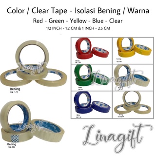 ( Rol 90 Yard ) COLOR CLEAR TAPE - ISOLASI BENING PLASTIK / WARNA 12MM / 24MM - 1/2 INCH 1 IN 0.5 IN 1.2CM 2,5CM