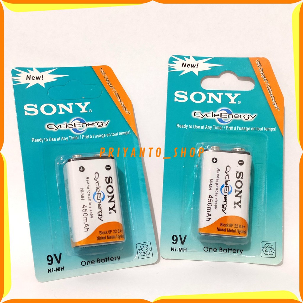 Brand : Sony Cycle energy Type : Ni-MH 9V Daya : 450 mAh Isi : 1pcs
