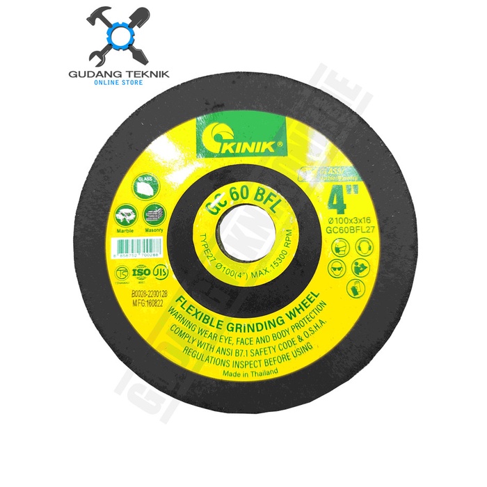 Batu Gerinda Poles Flexible 4" SATUAN AC60 GC60 WA60 KINIK / Flexible Grinding Wheel 4 Inch 1 Pcs AC GC WA 60 KINIK