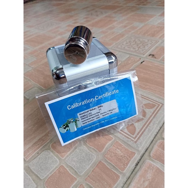 Batu Timbangan kelas F1 matrial stainless 304 berat 200 gr sudah lengkap dengan box penyimpanan dan surat keterangan calibrasi Dari pabrik barang sesuai foto dan baru ya kakak