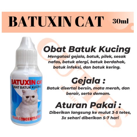 Batuxin adalah obat batuk yang diformulasikan khusus untuk kucing dengan rasa yang disukai oleh hewan peliharaan kesayangan anda. Batuxin mengatasi gejala-gejala batuk disertai bersin , mata merah, berair dan atau demam, gelisah dan kurang aktif