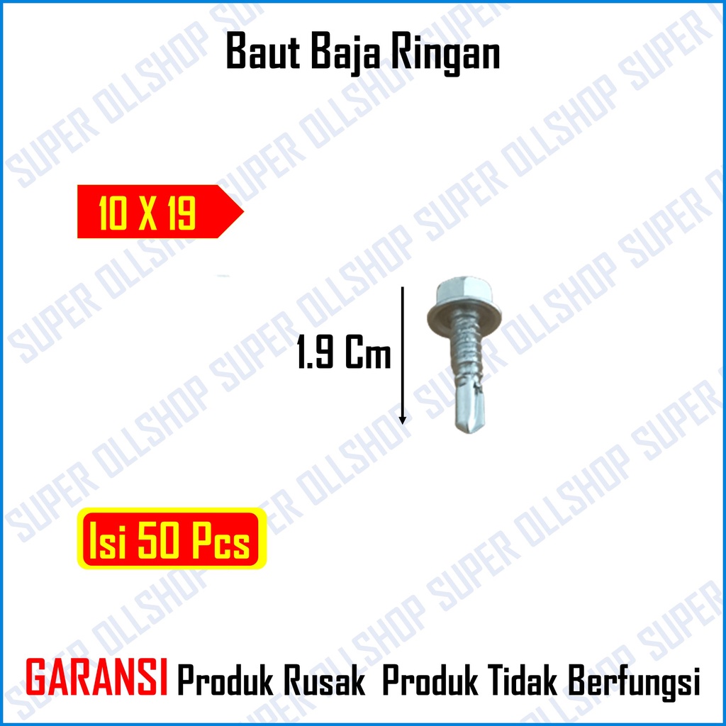Baut Baja Ringan/Galvalum Ukuran 10x16 Ukuran 10x19 Lebih kuat tajam dan mudah digunakan isi @ 50pcs