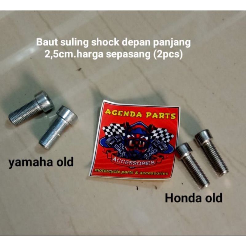 Baut baud Suling shock bawah Skok Depan HONDA-YAMAHA Pnp bebek matic dan sport juga Honda Drat 12 kasar panjang 2,5cm Yamaha drat 14 halus panjang 2,5 cm