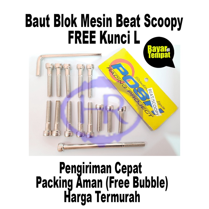 Baut Blok Beat / Scoopy / Baut Blok Mesin CVT Beat Scoopy Chrome Posh / Baut Blok Mesin CVT Beat Scoopy Chrome Posh