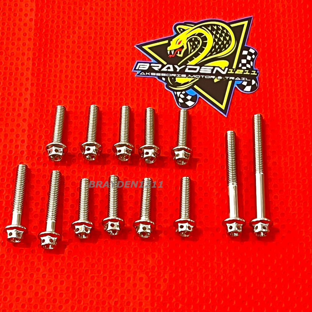 YANG DI DAPAT SESUAI FOTO 13 PC KOMPLIT FULL SET BAHAN BESI KUALITAS SESUAI HARGA JGN BANDINGKAN DENGAN YG HARGANYA 150RBAN ADA HARGA AD KUALITAS BISA KARAT TAPI DALAM JANGKA WAKTU LAMA DETAIL SESUAI FOTO DAN VIDIO KEPALA BAUT BOLONG PNP MIO SMUA TAHUN BLOK CVT KM 13 PC = BISA