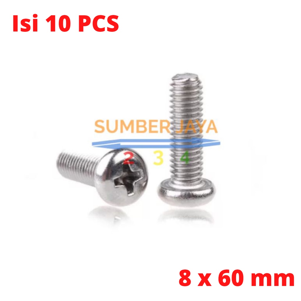 Baut JP 8 x 60 putih ISI 10 PCS / Skrup JP 8 x 60 TERMURAH