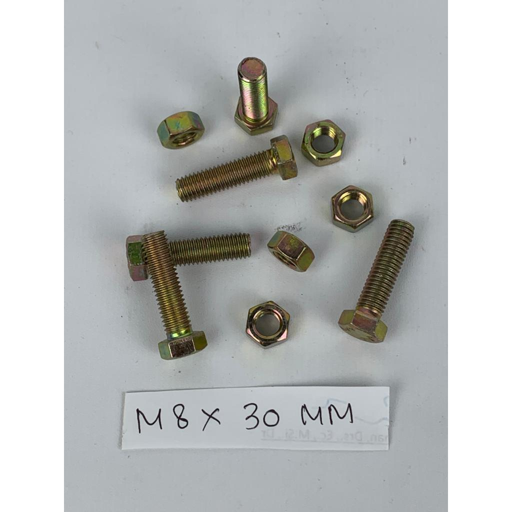 Perlengkapan Rumah > Perkakas > Perkakas Lainnya > BAUT M8X30 MM ISI 10 PCS WARNA KUNING HEXAGON HEX BMK MUR BAHAN BESI TEBAL HARGA MURAH BERKUALITAS PROMO DISKON TERLARIS