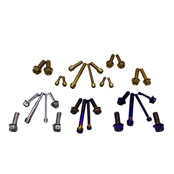 Baut Probolt Paket Kaliper 4 Piston Monoblok Tabung Shock Standar NB : *Isi 4pcs •Color : Crum, Gold, Blue, 2Tone •Untuk Tabung Shock Standar / Standar Variasi •Baut Berbahan Besi & Stanless •Baut Kerucut Ke Kaliper : *M6x50mm *M8x55mm •Baut Flower Ke Tabung Shock : *M8x25mm : All Matic & Bebek HONDA *M8x30mm : Ninja150, Satria FU150, Tiger, GL M Pro *M10x25mm : All Matic & Bebek YAMAHA *M10x30mm : Vixion, Scorpio, RX King