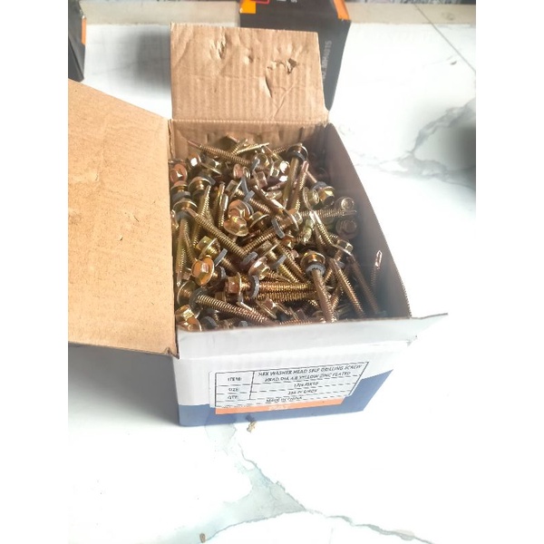 harga 1box isi 250pcs baut rofing atap bata ringan merk Pat ukuran panjang 5cm (12 x 50) isi kurang 1lebih 250pcs